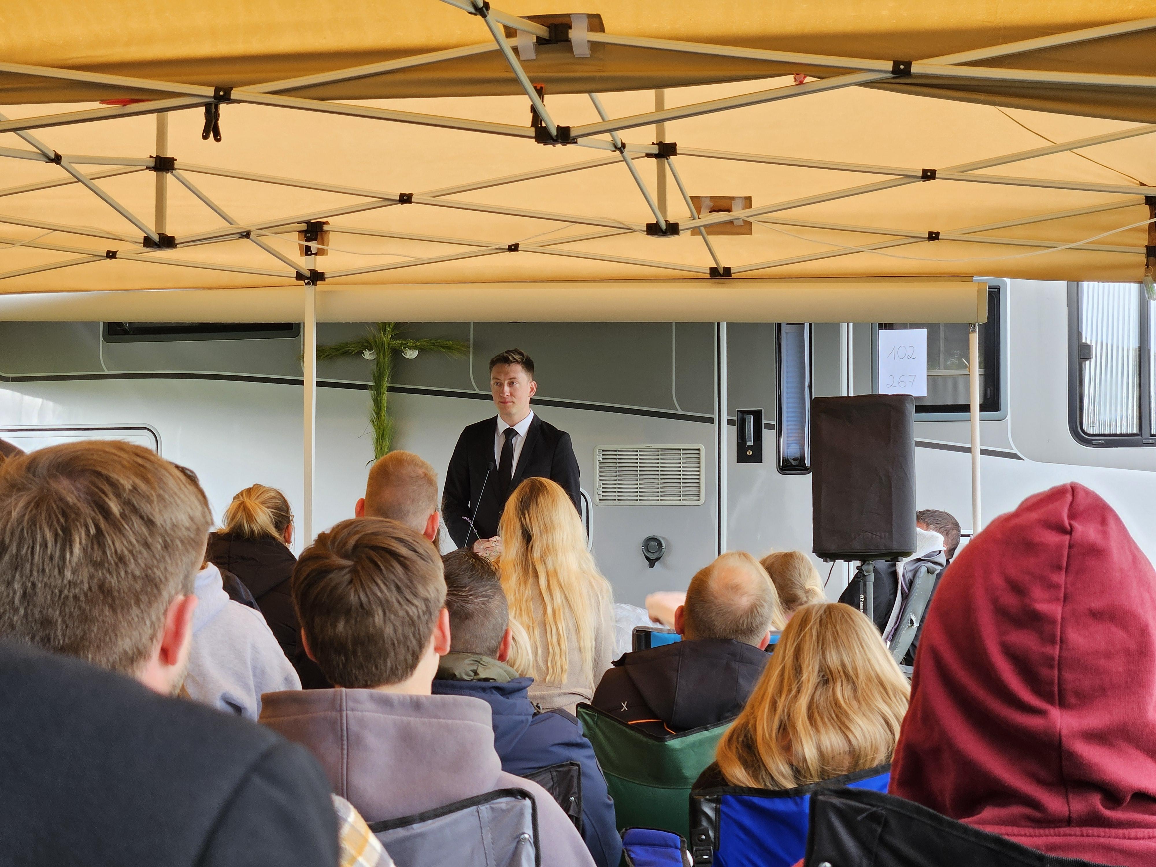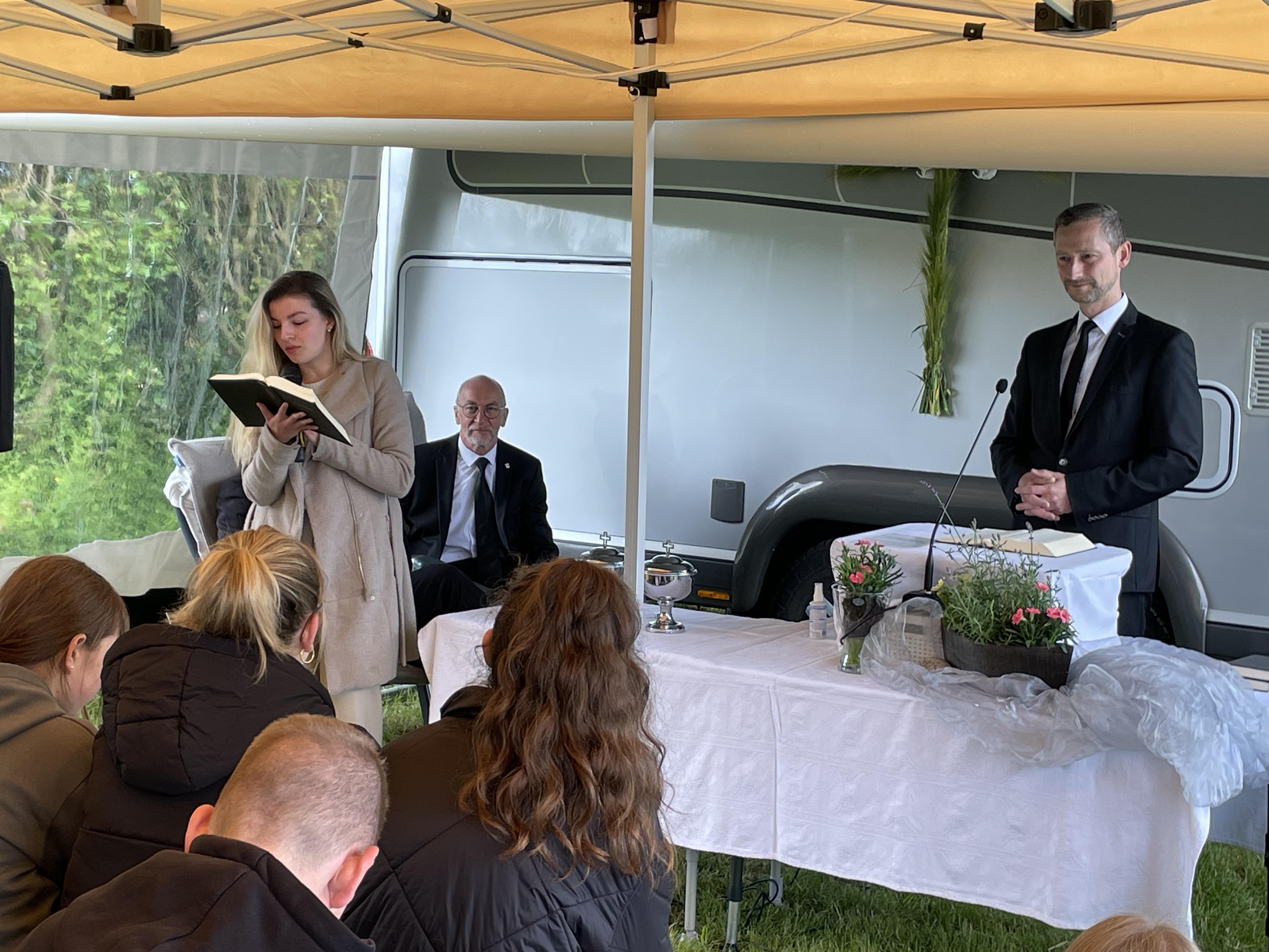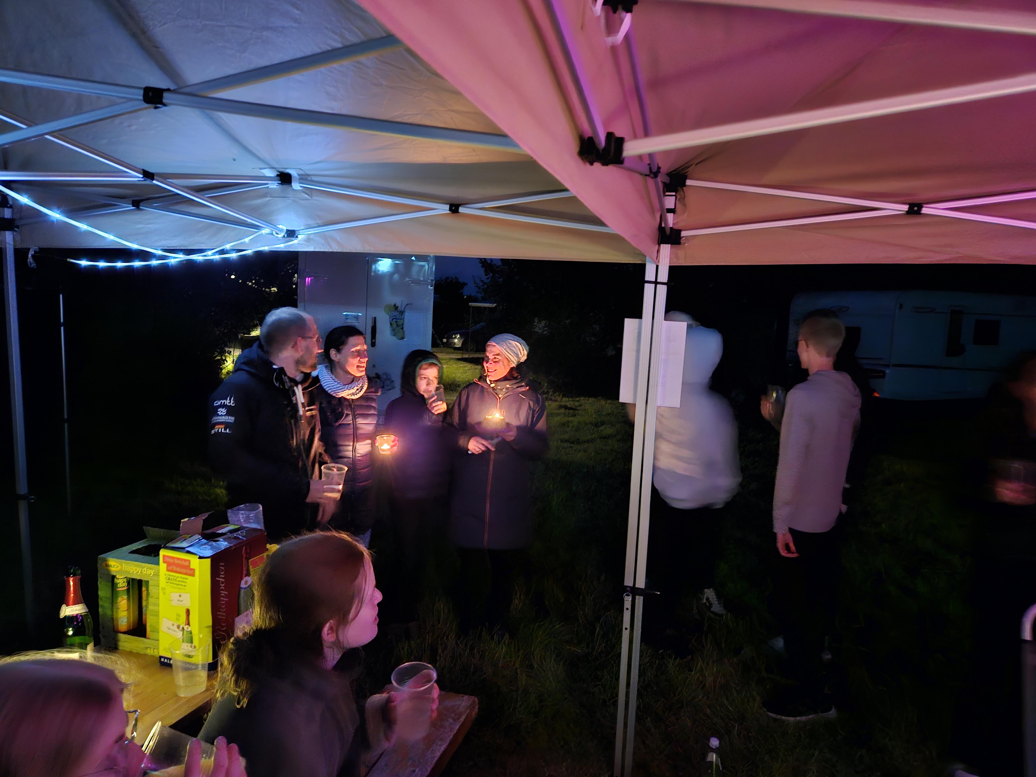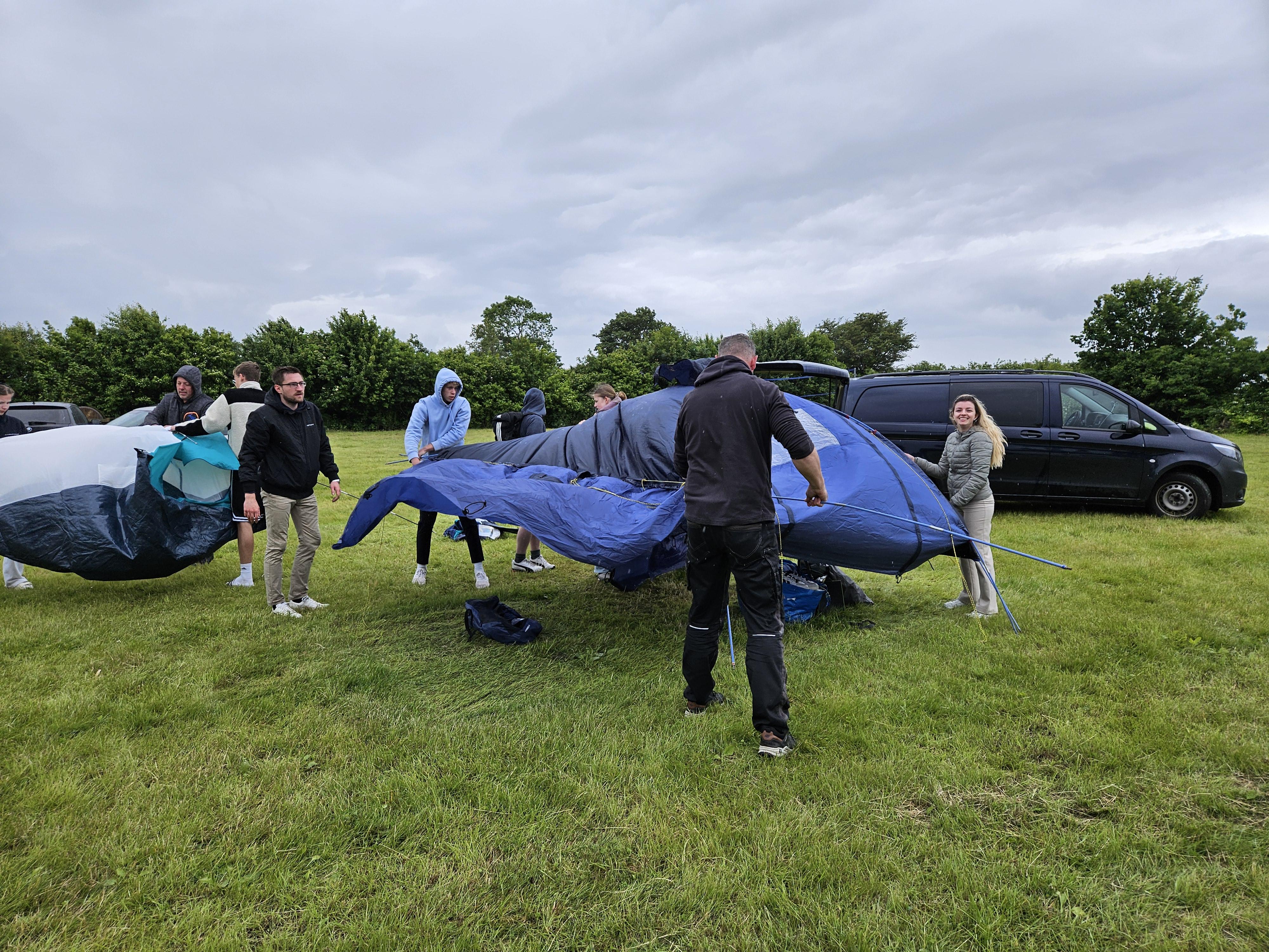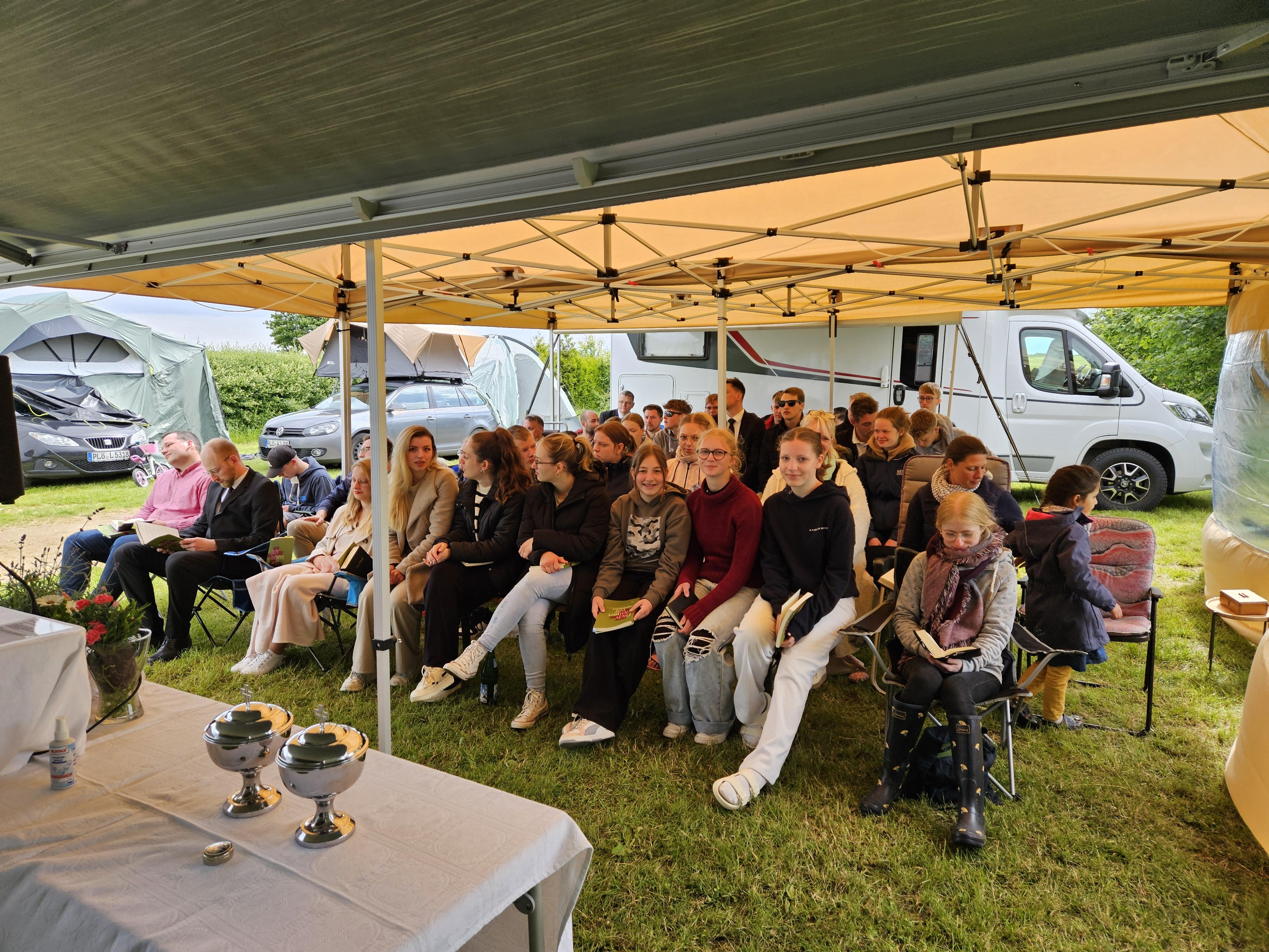 Am Sonntag fand zum Abschluss unser Jugendgottesdienst bei Regen und Wind unter Pavillons statt, bevor die Zelte schließlich abgebaut wurden.