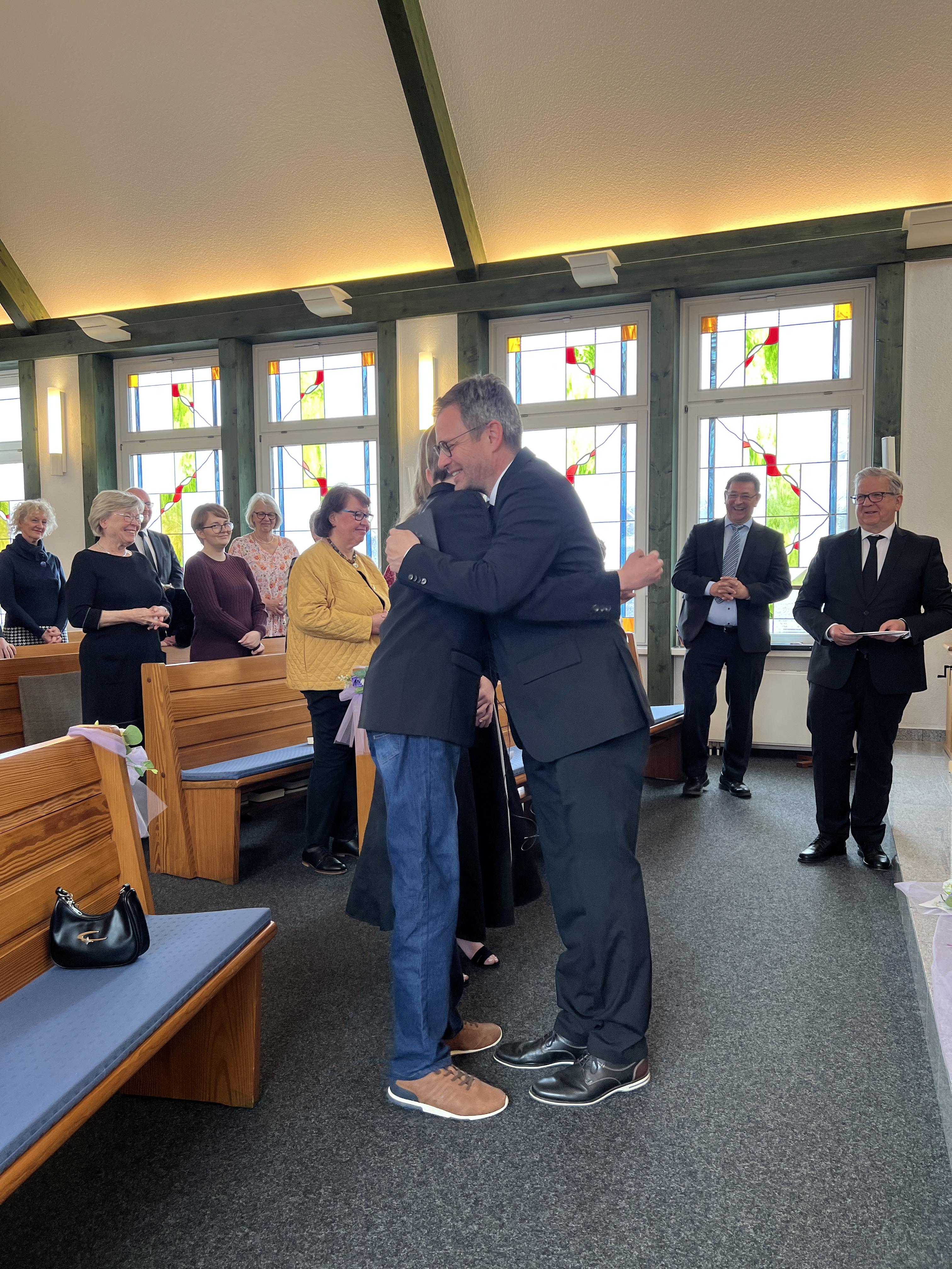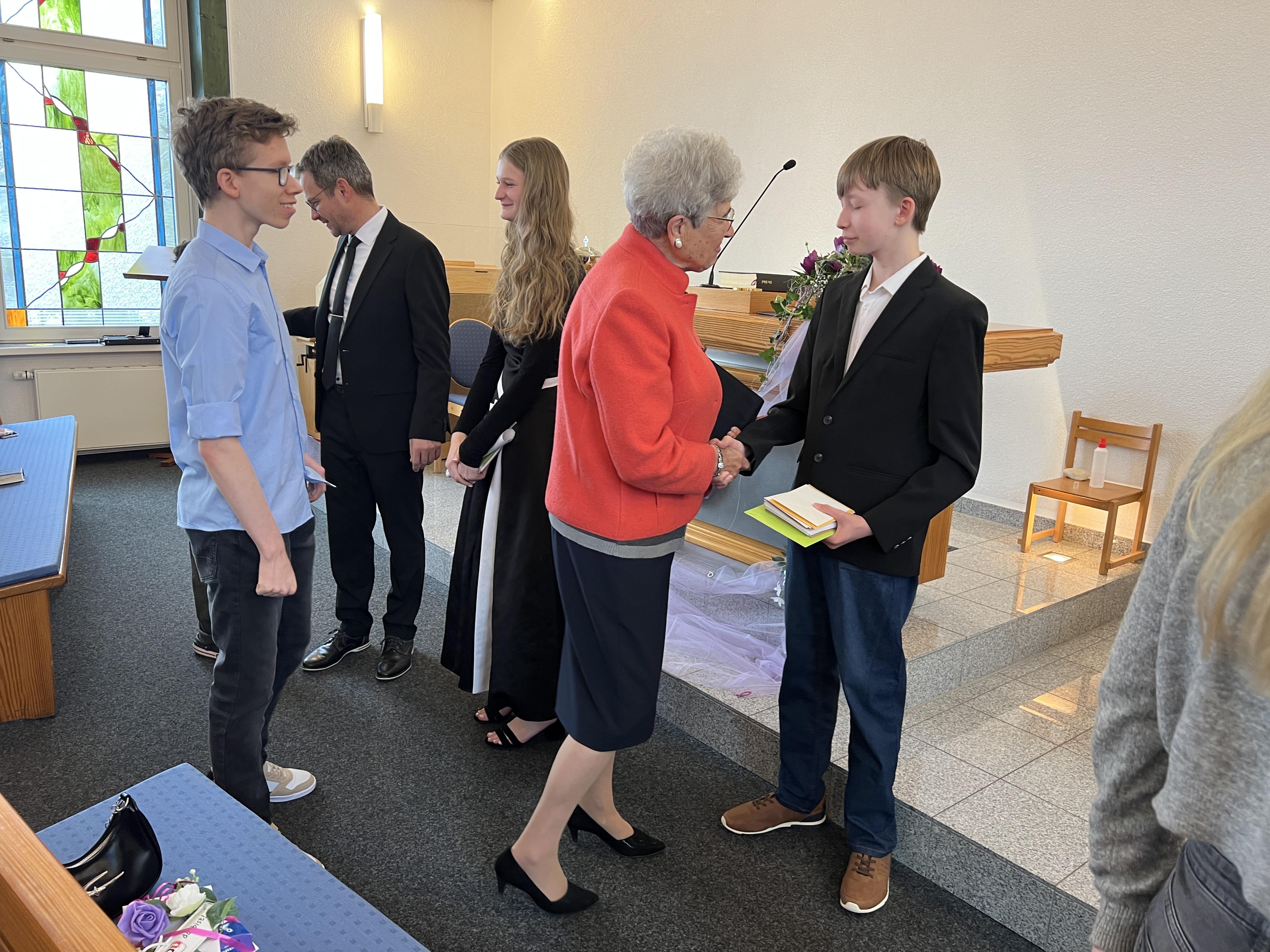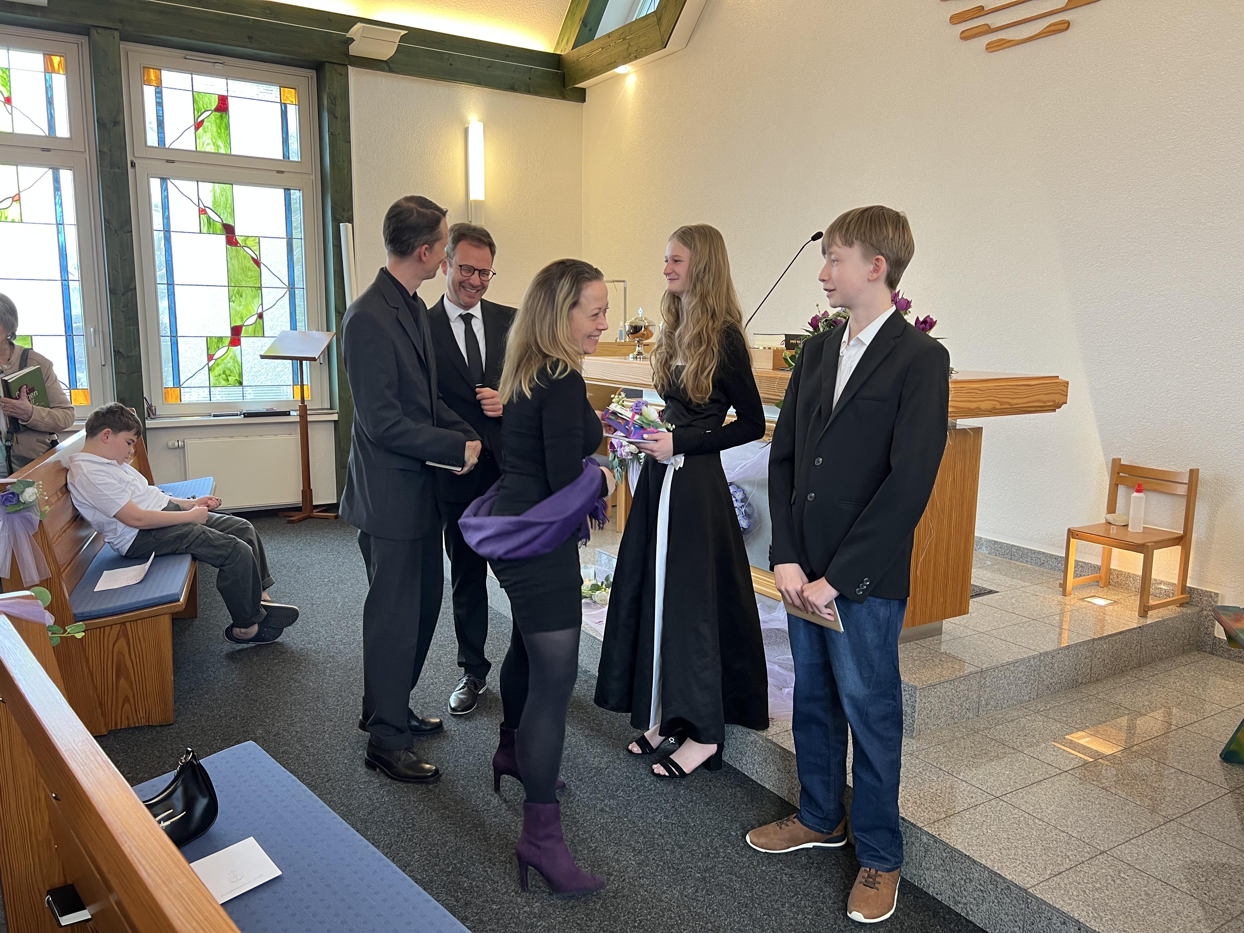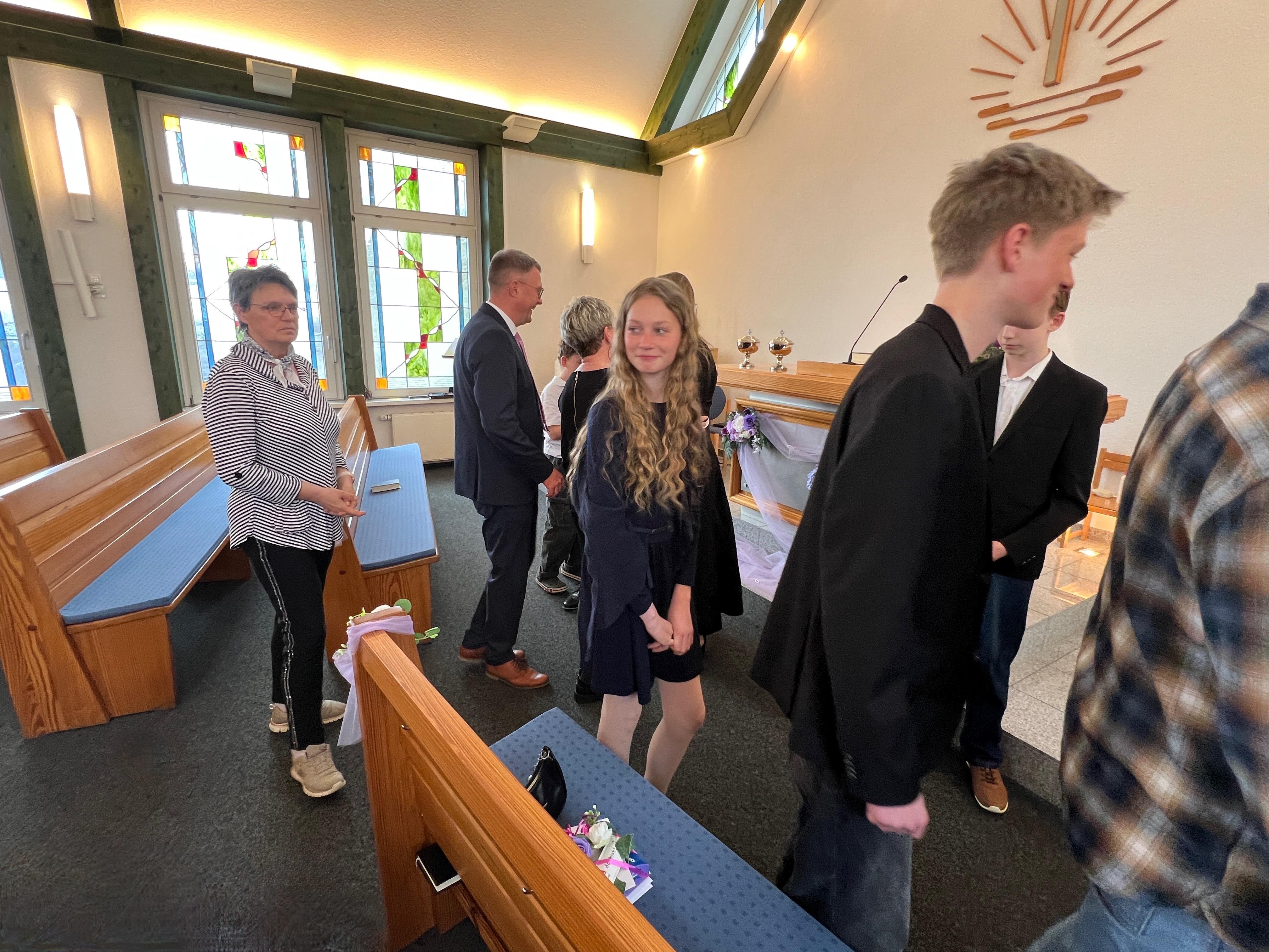 Anschließend konnte die Gemeinde die Konfirmanden mit Glückwünsche, Geschenke und Knuddeln beglücken.
