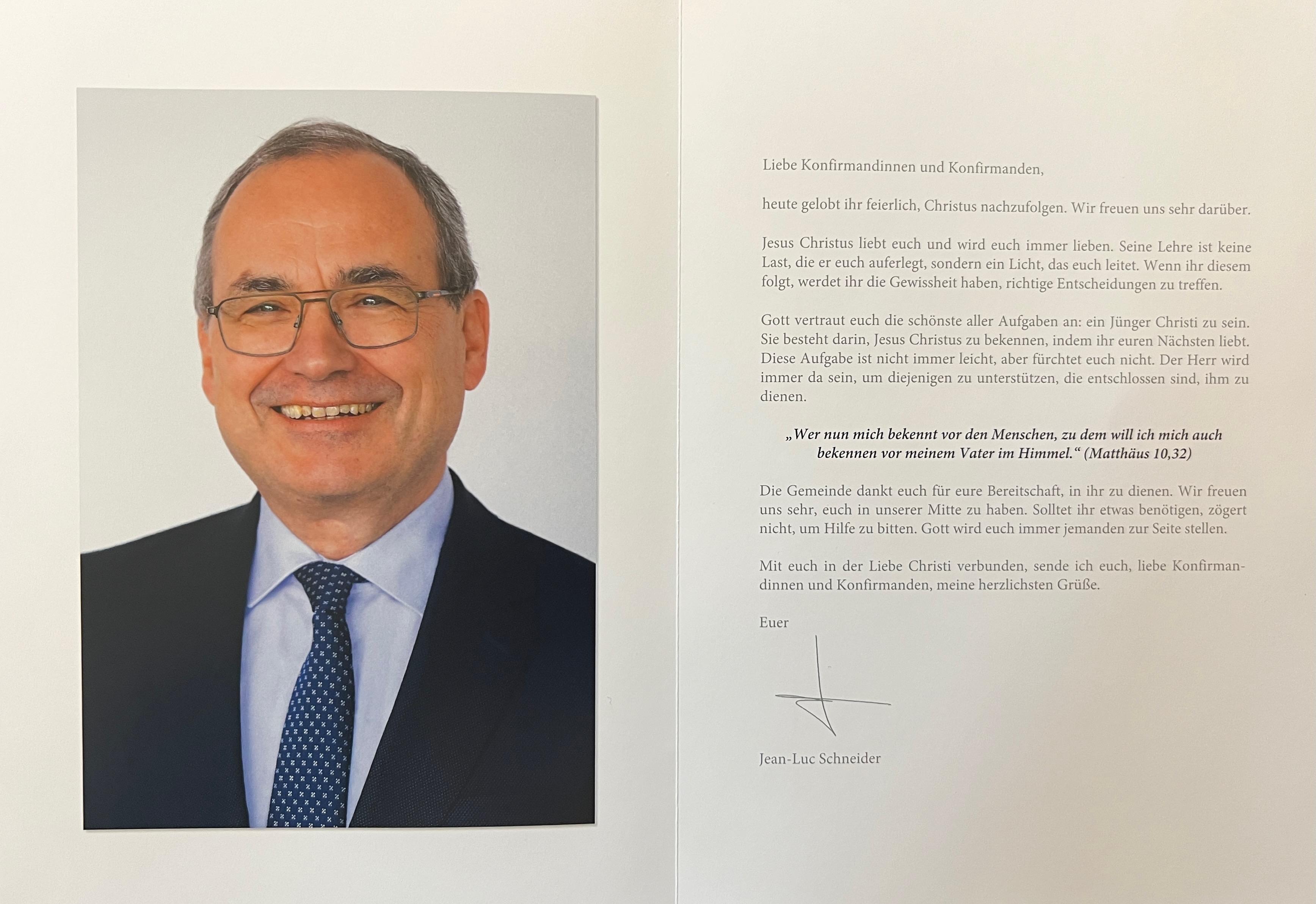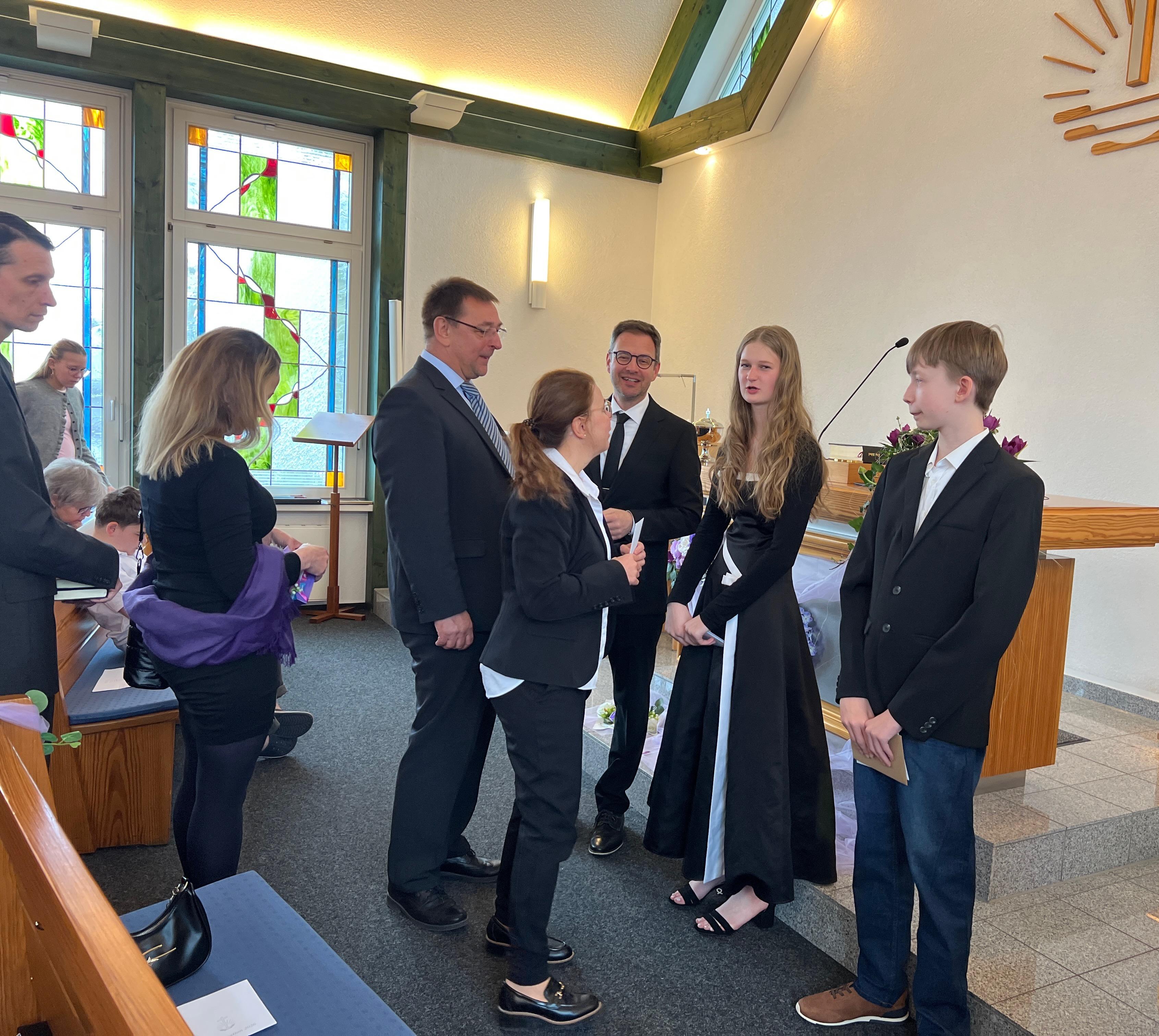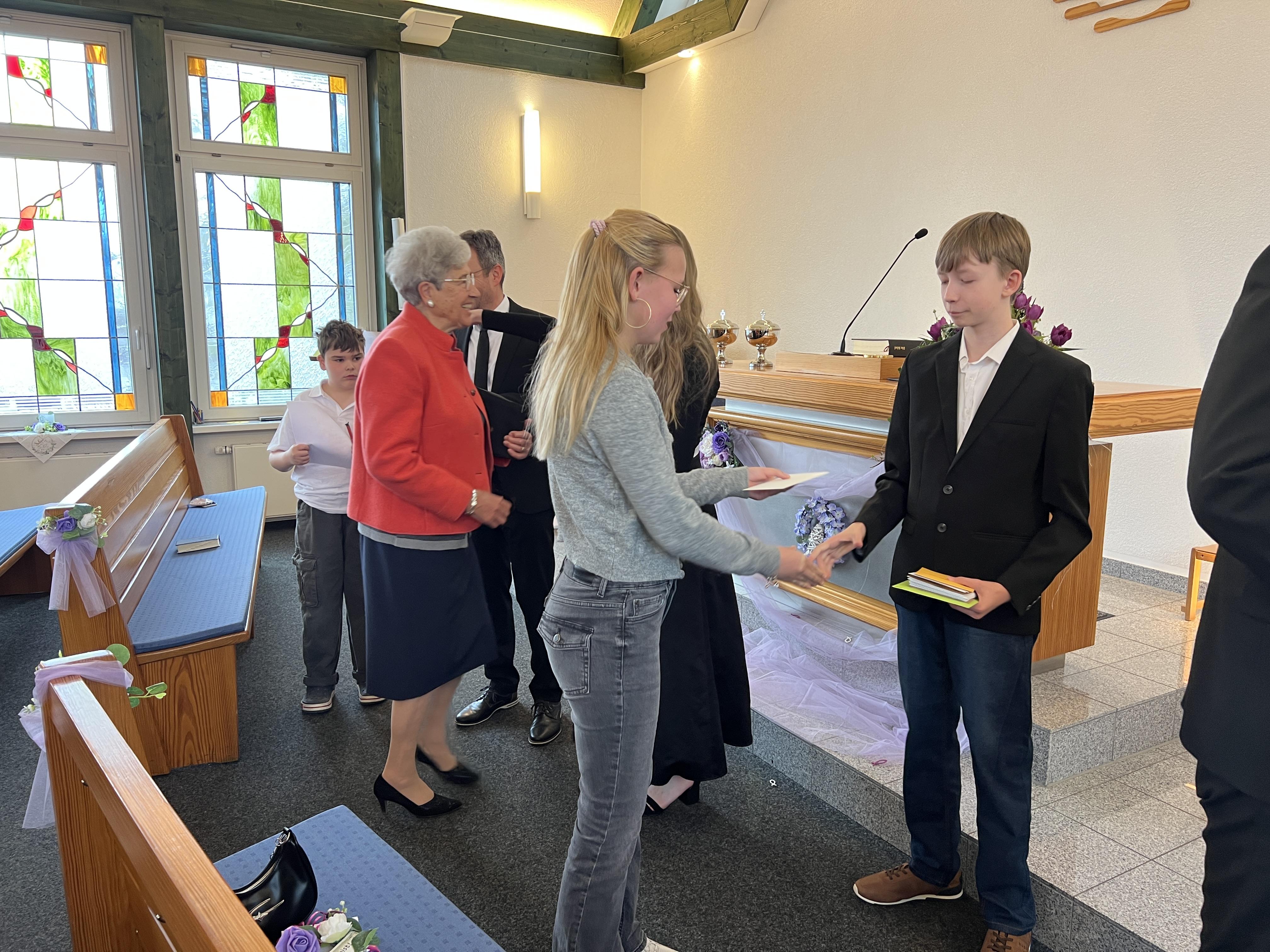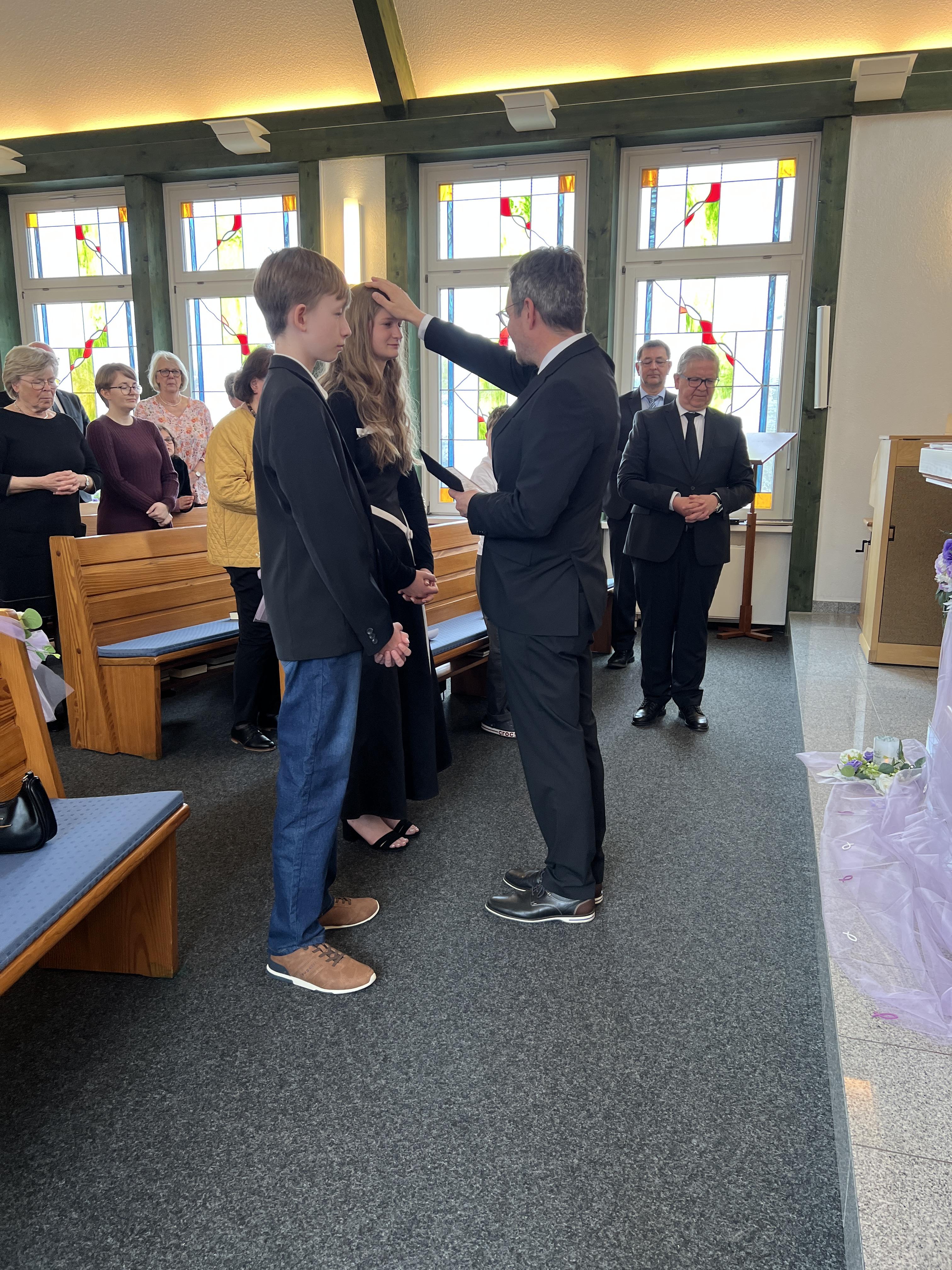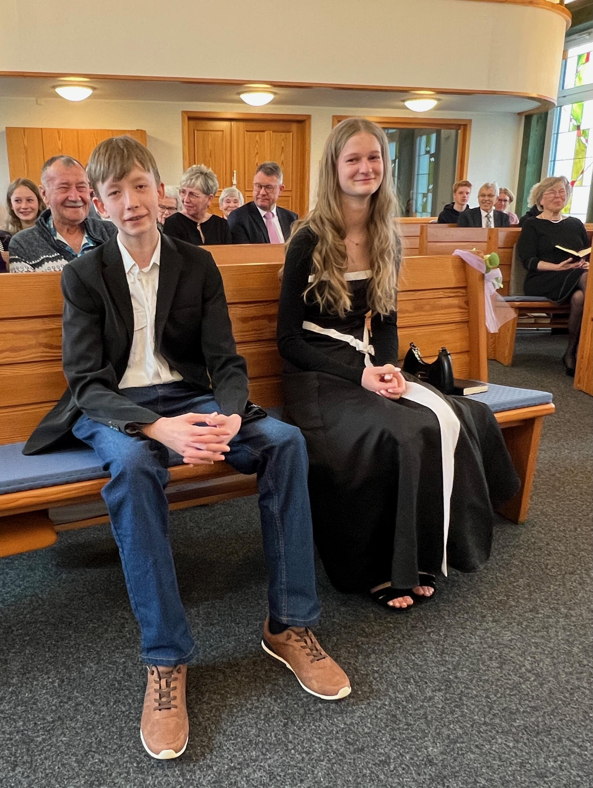 mit Alberta Winkler und Lukas Binder. Bei der Konfirmation übernehmen Heranwachsende vor Gott die Verantwortung für ihr Handeln als Christen. Sie bekennen ihren Glauben zum dreieinigen Gott und bekunden den Willen, ihr Leben nach seinen Maßstäben zu führen. Unter Handauflegung empfangen sie den Segen, der sie in ihrem Bestreben stärken soll.